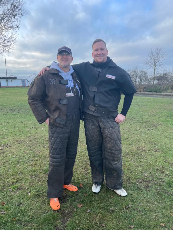 Schutzdiensthelfer Steffen Schulz und bei Fährtenleger Klaus